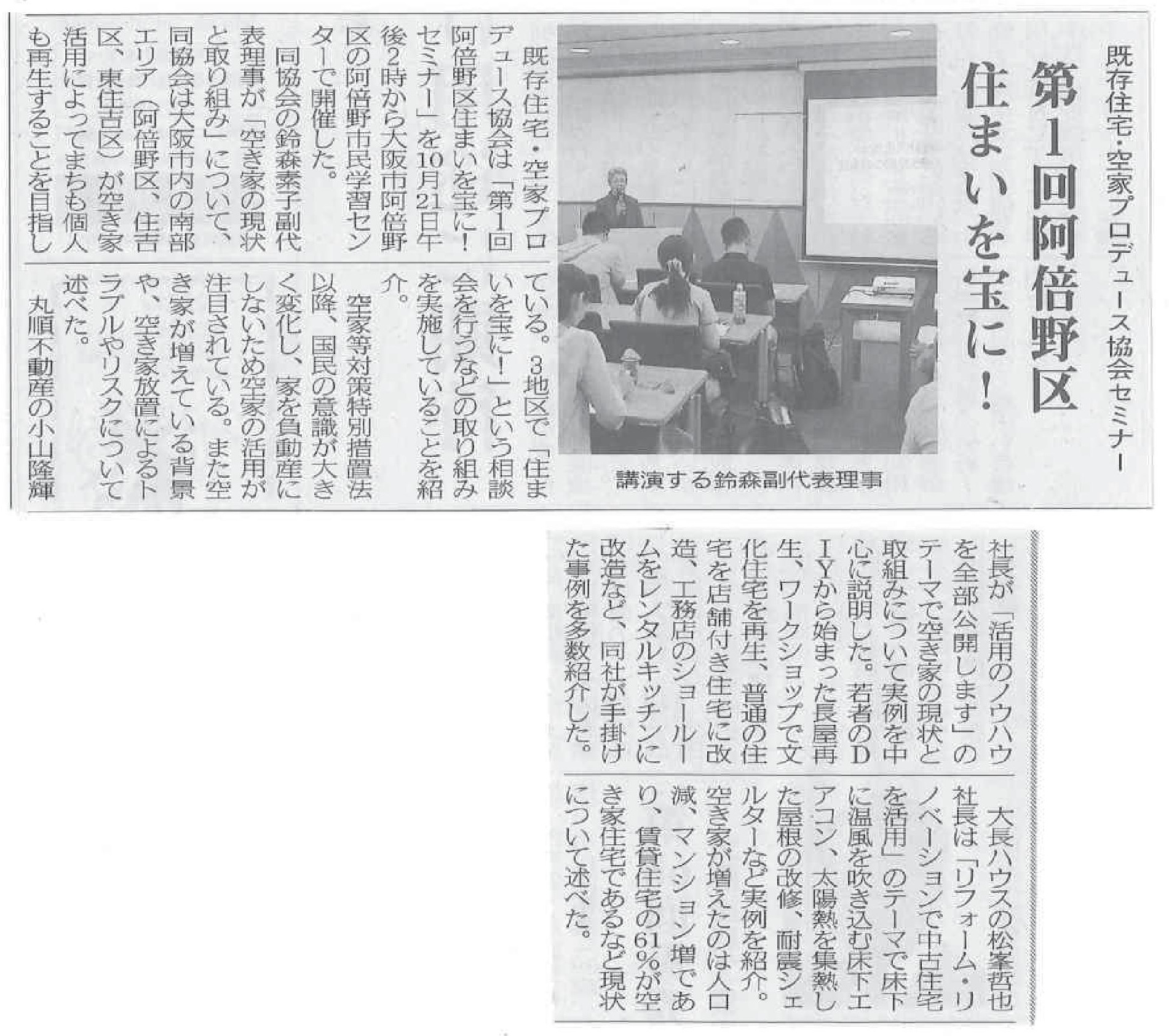11/21(水)10時~11時 空き家セミナー(阿倍野区社会福祉協議会 多目的室)